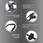- Управление коляской возможно одной рукой — идеальный баланс манёвренности и устойчивости.