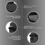 - Ткань плотностью 600D устойчива к влаге, выгоранию и ультрафиолету.